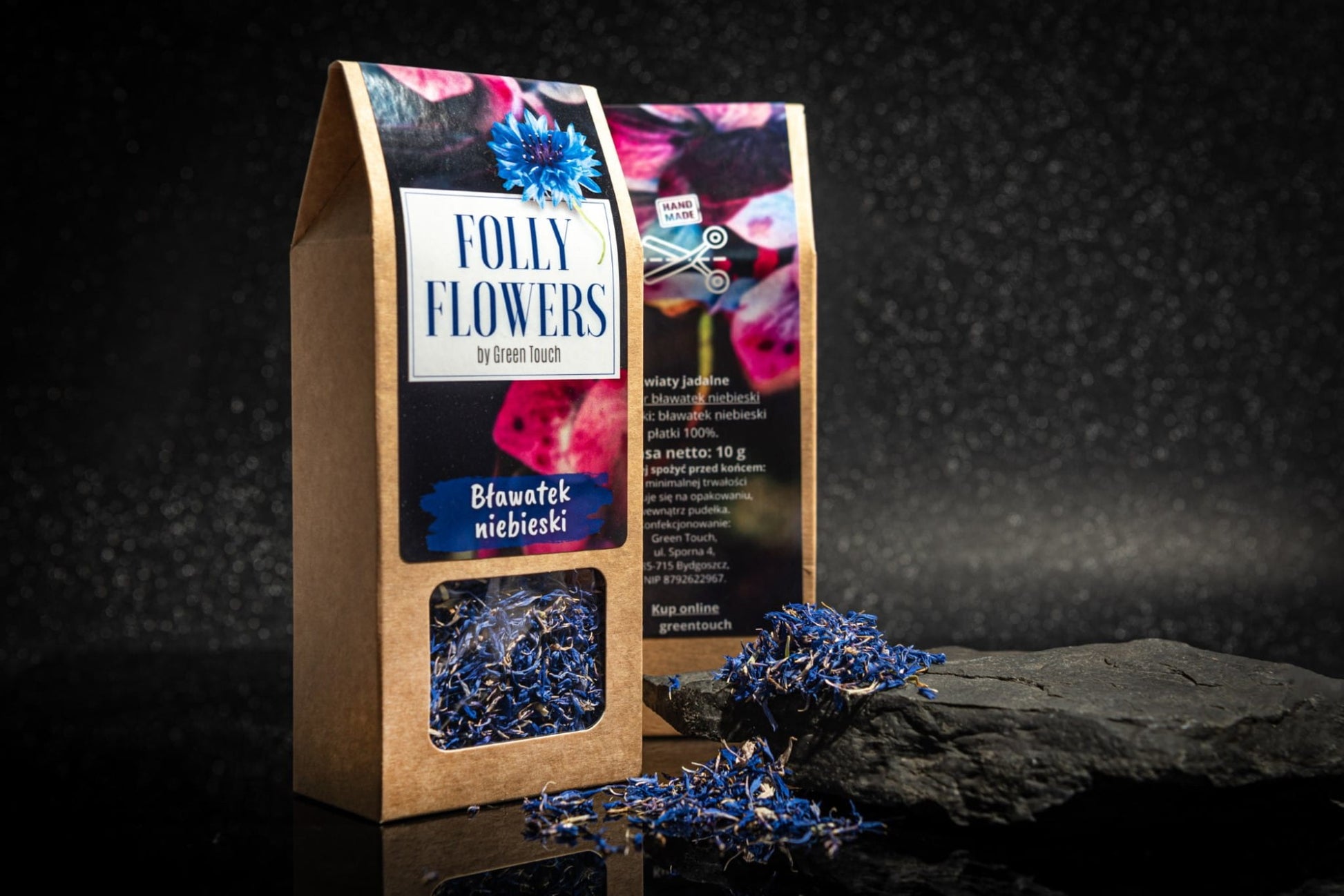 Bławatek niebieski z serii Folly Flowers by Green Touch to wyjątkowo efektowny i wszechstronny dodatek kulinarny i dekoracyjny. Te starannie wyselekcjonowane, naturalnie suszone płatki zachwycają głębokim kolorem i subtelnym ziołowo-kwiatowym aromatem. Idealnie sprawdzają się jako ozdoba dań i deserów, ale także jako składnik przypraw, naparów i mieszankek herbacianych. Dodają potrawom elegancji, a jednocześnie wnoszą delikatną, roślinną nutę smakową. Dzięki swojej uniwersalności bławatek inspiruje do tworzenia oryginalnych i kreatywnych kompozycji – nie tylko w kuchni, ale i w domowym SPA czy rękodziele.