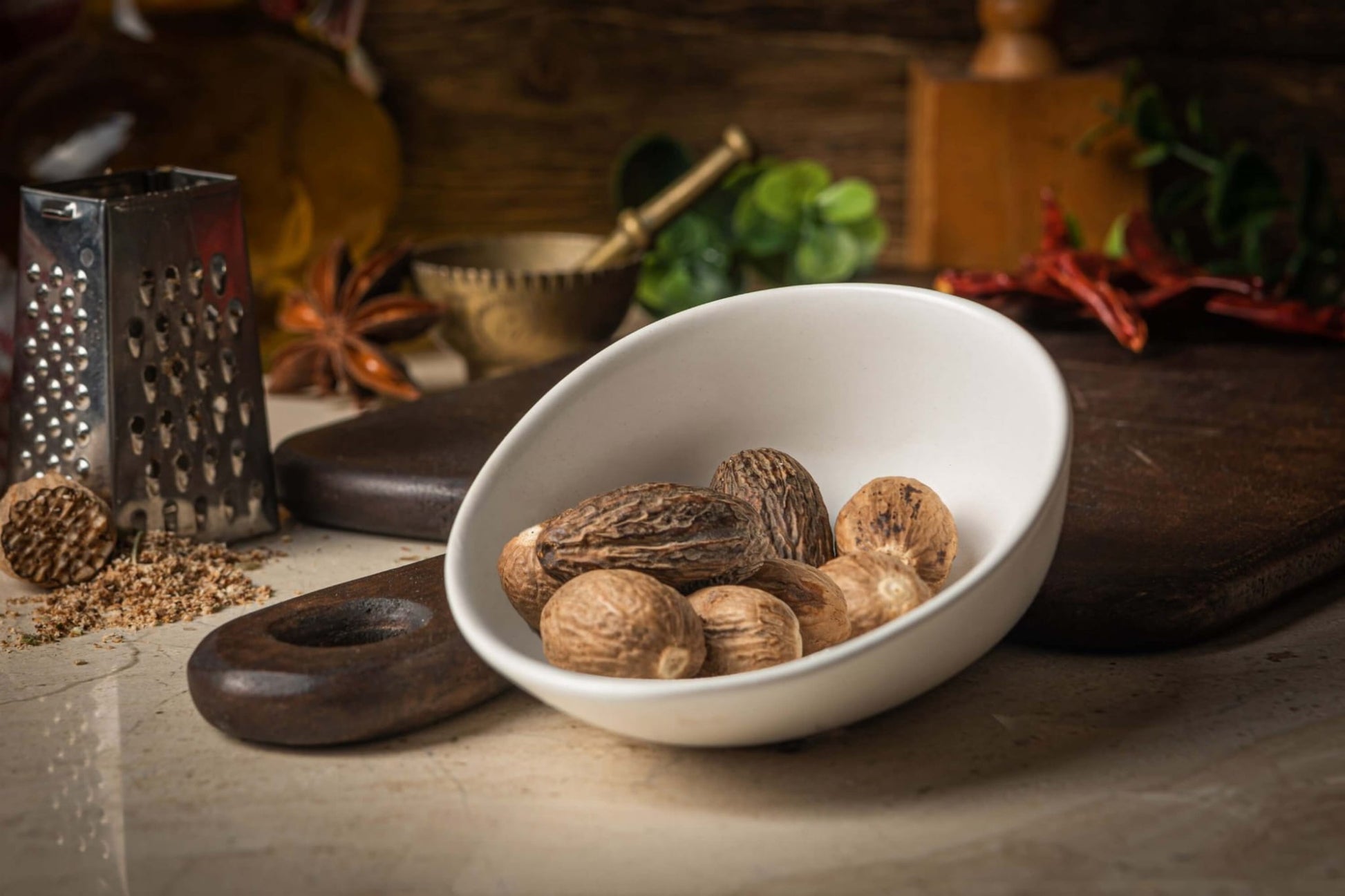 Gałka muszkatołowa to aromatyczna przyprawa o korzenno-słodkim zapachu i intensywnym, lekko piekącym smaku. Pozyskiwana jest z nasion muszkatołowca korzennego – wiecznie zielonego drzewa rosnącego w klimacie tropikalnym. W całości zachowuje świeżość i pełnię aromatu znacznie dłużej niż mielona wersja, dlatego polecana jest do samodzielnego ścierania tuż przed dodaniem do potraw. Od wieków stosowana zarówno w kuchni, jak i w ziołolecznictwie. Doceniana nie tylko za swój wyjątkowy smak, ale też właściwości rozgrzewające i wspomagające trawienie.