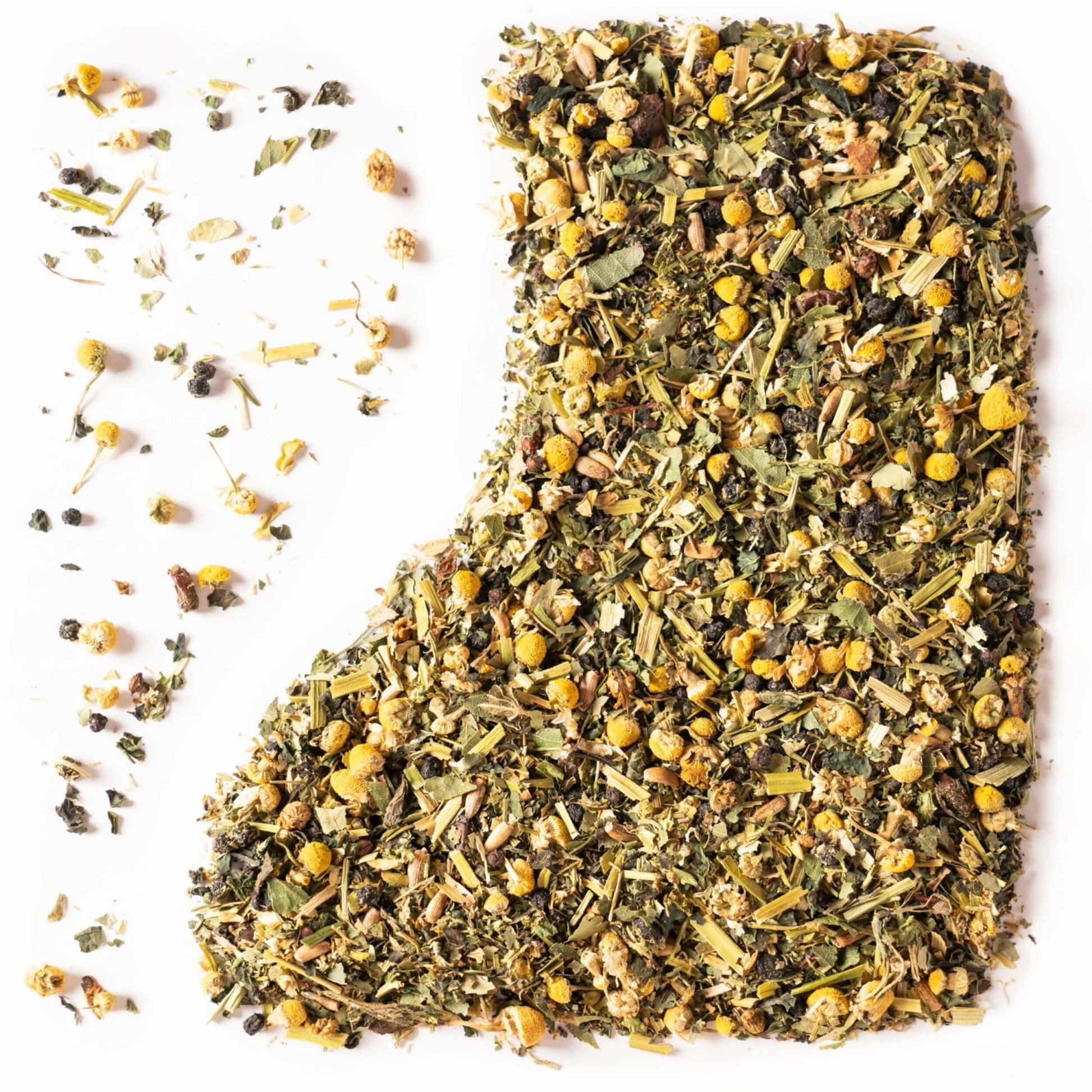 SKŁADNIKI: owoc bzu czarnego — 20%, ziele fiołka trójbarwnego — 20%, liść pokrzywy — 18%, kwiat rumianku — 18%, owoc ostropestu — 12%, liść brzozy — 10%, owoc berberysu — 2%.