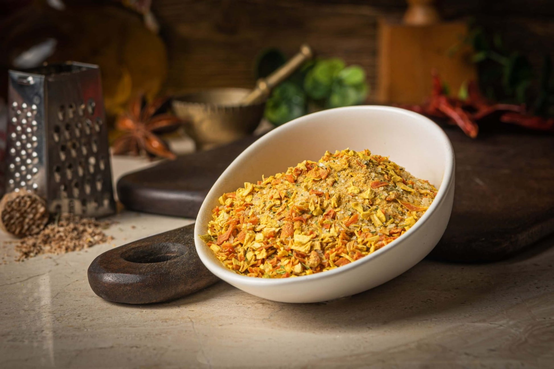 Bogactwo suszonych warzyw i aromatycznych przypraw, takich jak lubczyk czy pietruszka, nadaje potrawom głębi smaku i apetycznego aromatu. To idealny sposób na szybkie doprawienie dań, bez konieczności sięgania po wiele różnych przypraw osobno.
