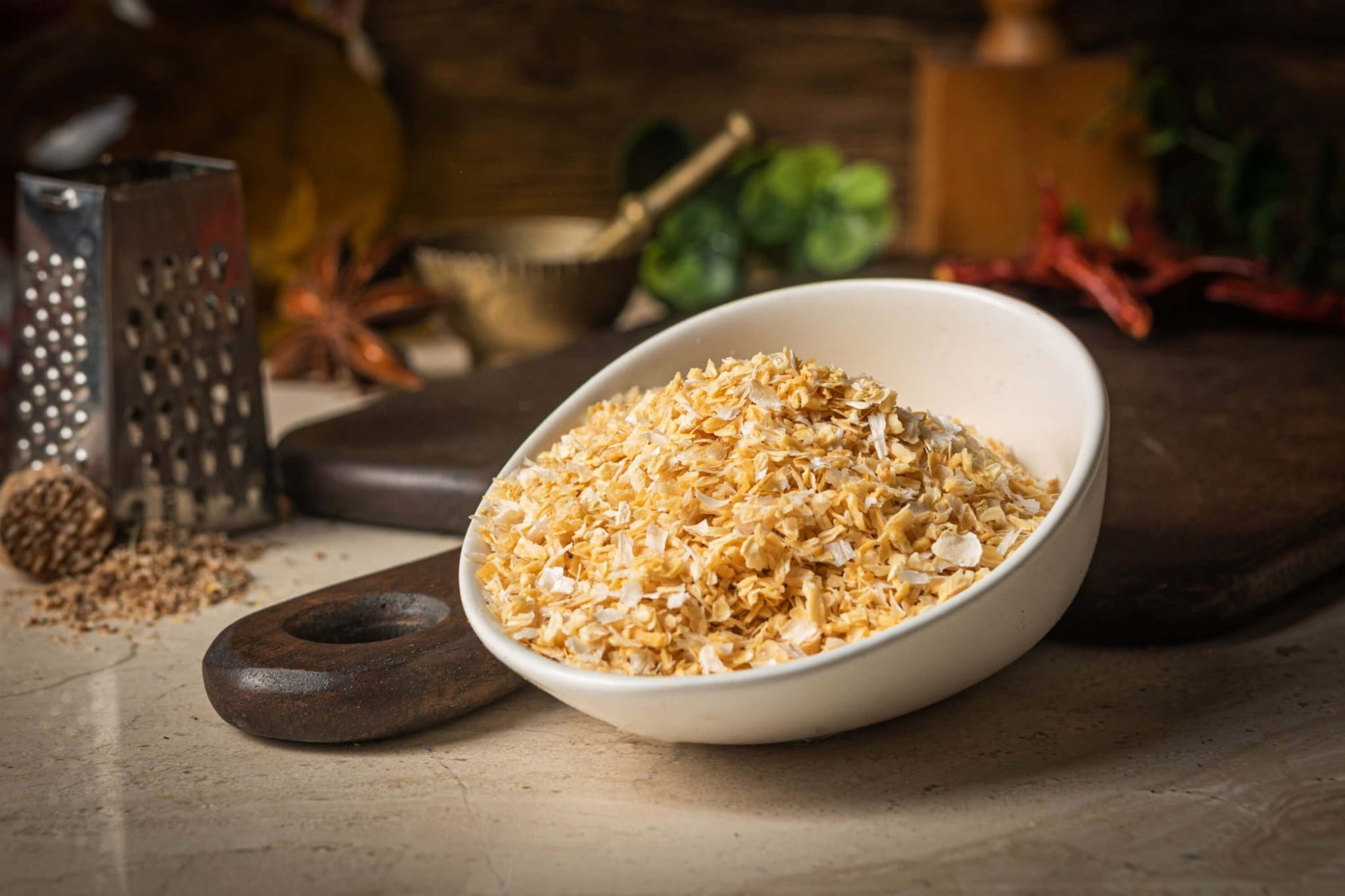 Cebula suszona w formie grysu to doskonały sposób na szybkie wprowadzenie aromatu cebuli do potraw, bez intensywnego, ostrego zapachu charakterystycznego dla świeżej cebuli. Dzięki procesowi suszenia, cebula zyskuje łagodniejszy, ale wciąż wyrazisty smak, który doskonale podkreśla inne składniki dania.