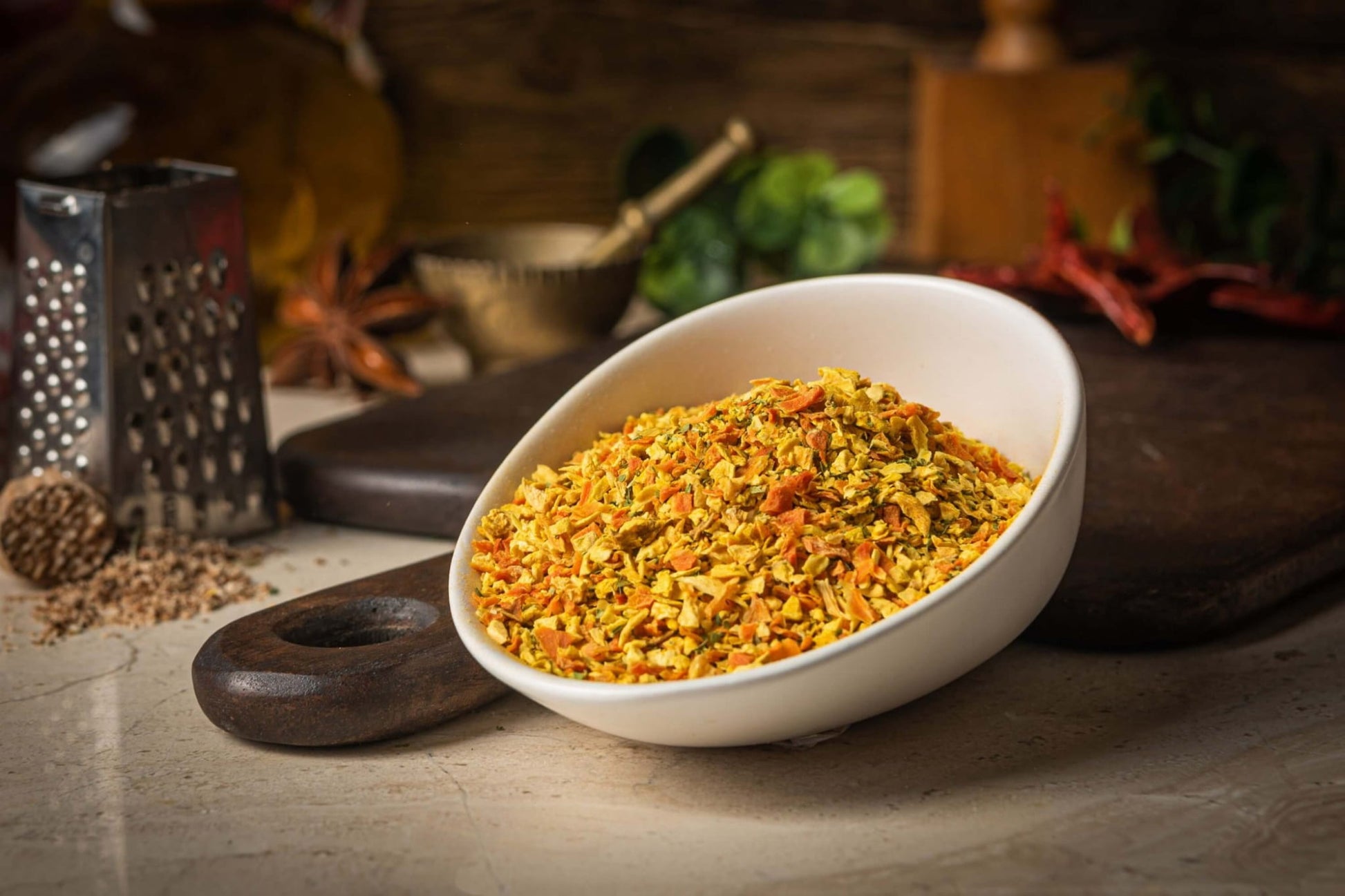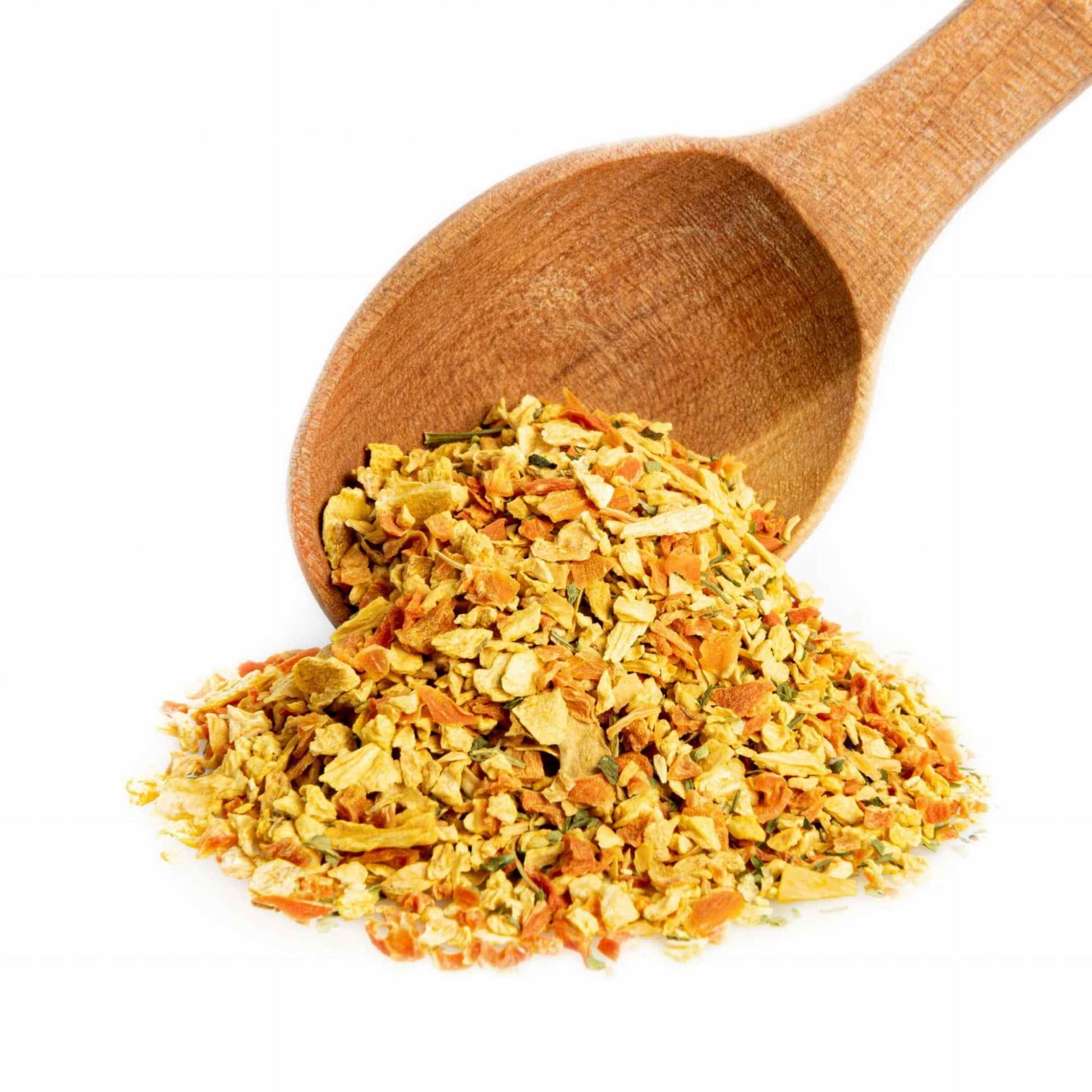 Przyprawa uniwersalna dodaje aromatu i smaku zupom, mięsom i marynatom.